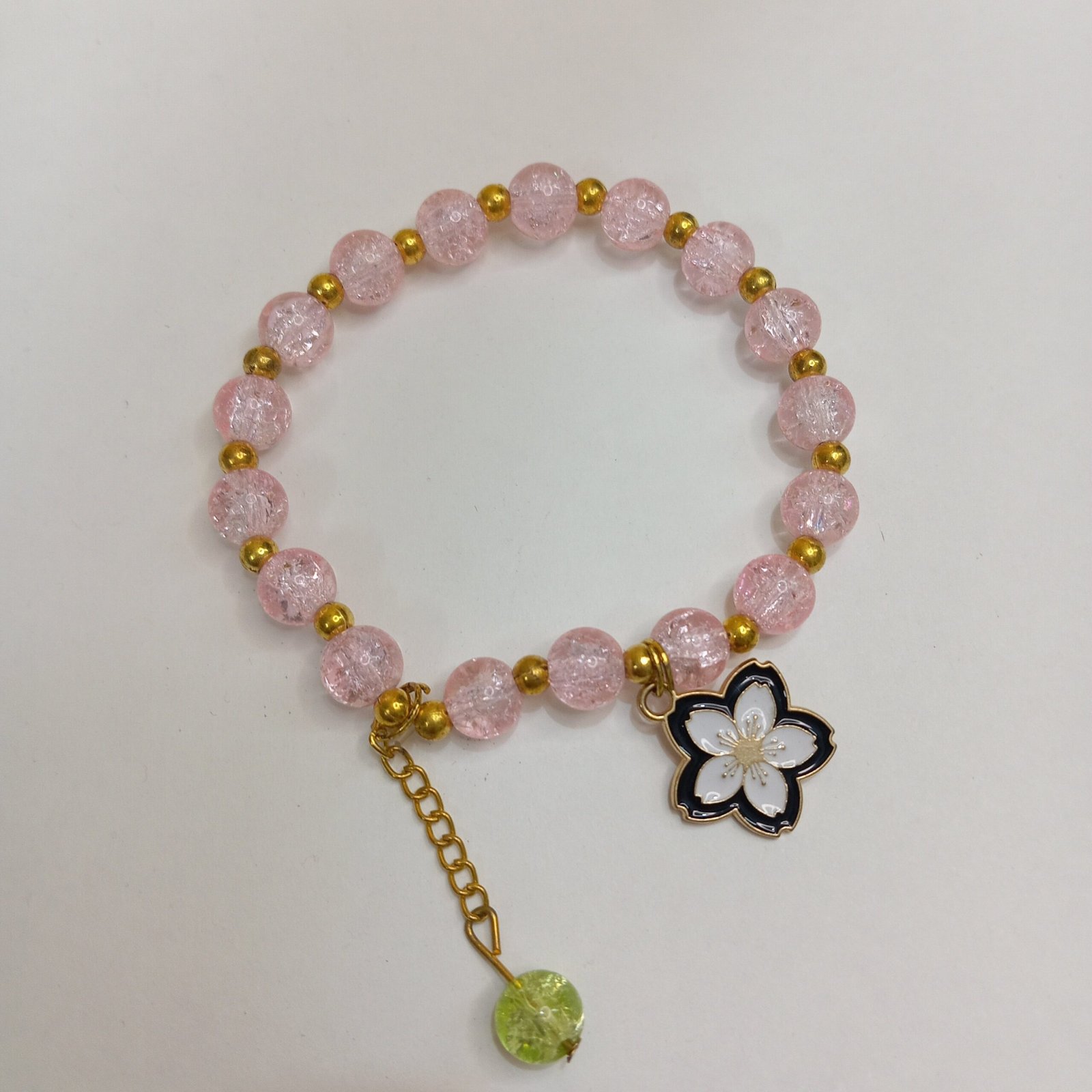 Be the first to review “Crystal Pink Bracelet with White and Black Flower Metal Charm”