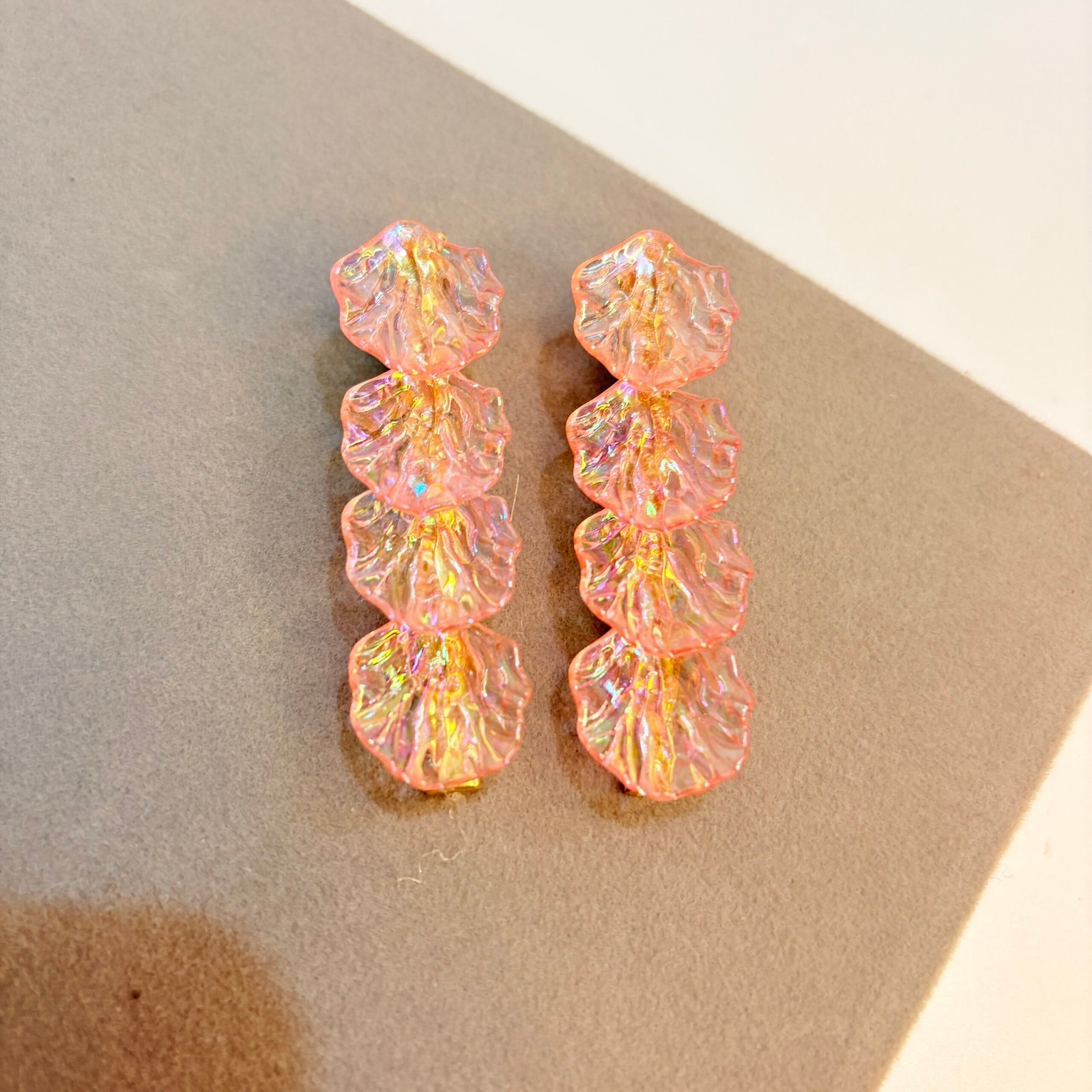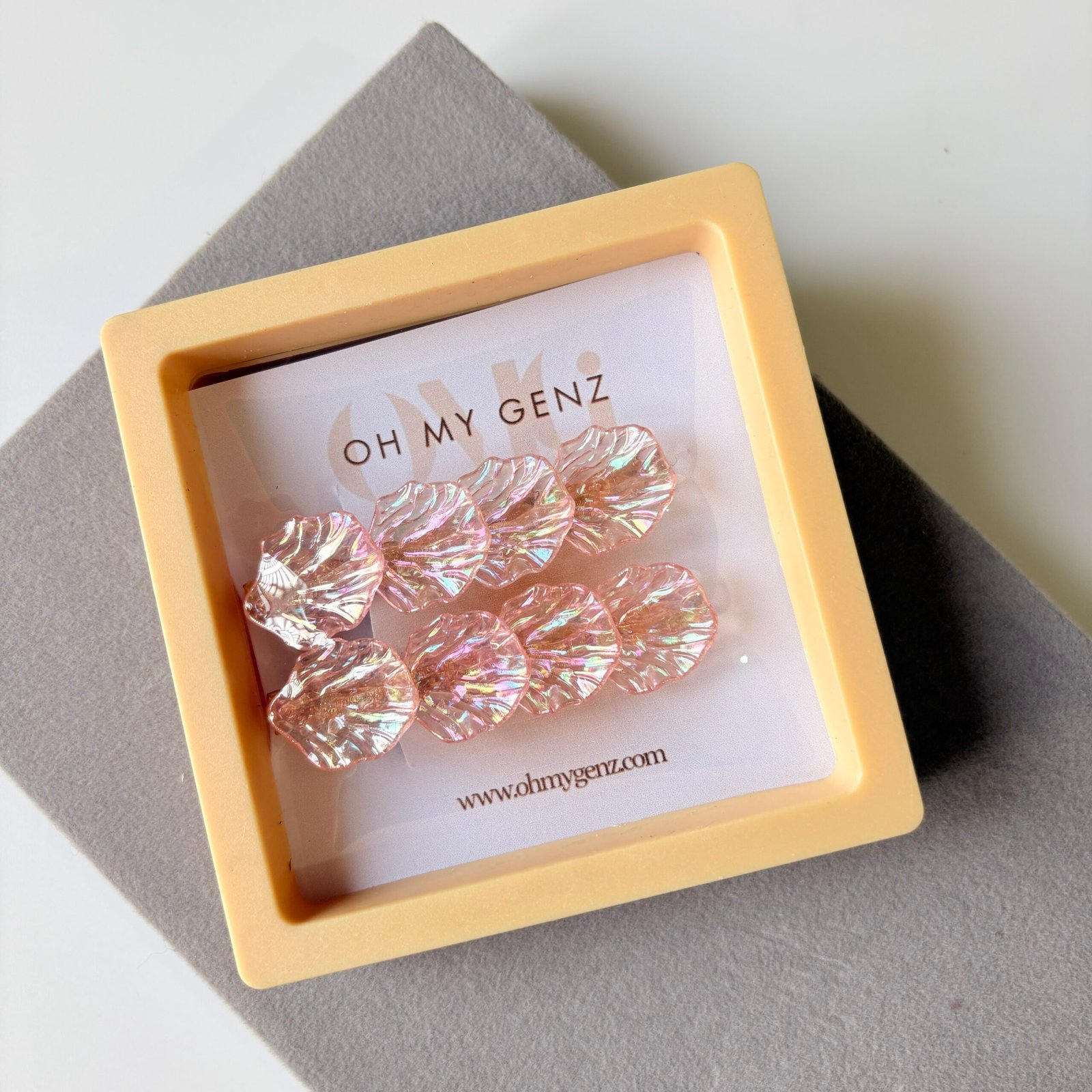 Soft, dreamy and mermaid-core inspired — these iridescent shell hair clips reflect light beautifully to give your hairstyle a delicate glow. The translucent blush finish pairs perfectly with both casual outfits and dressy looks, making them a must-have for aesthetic styling.