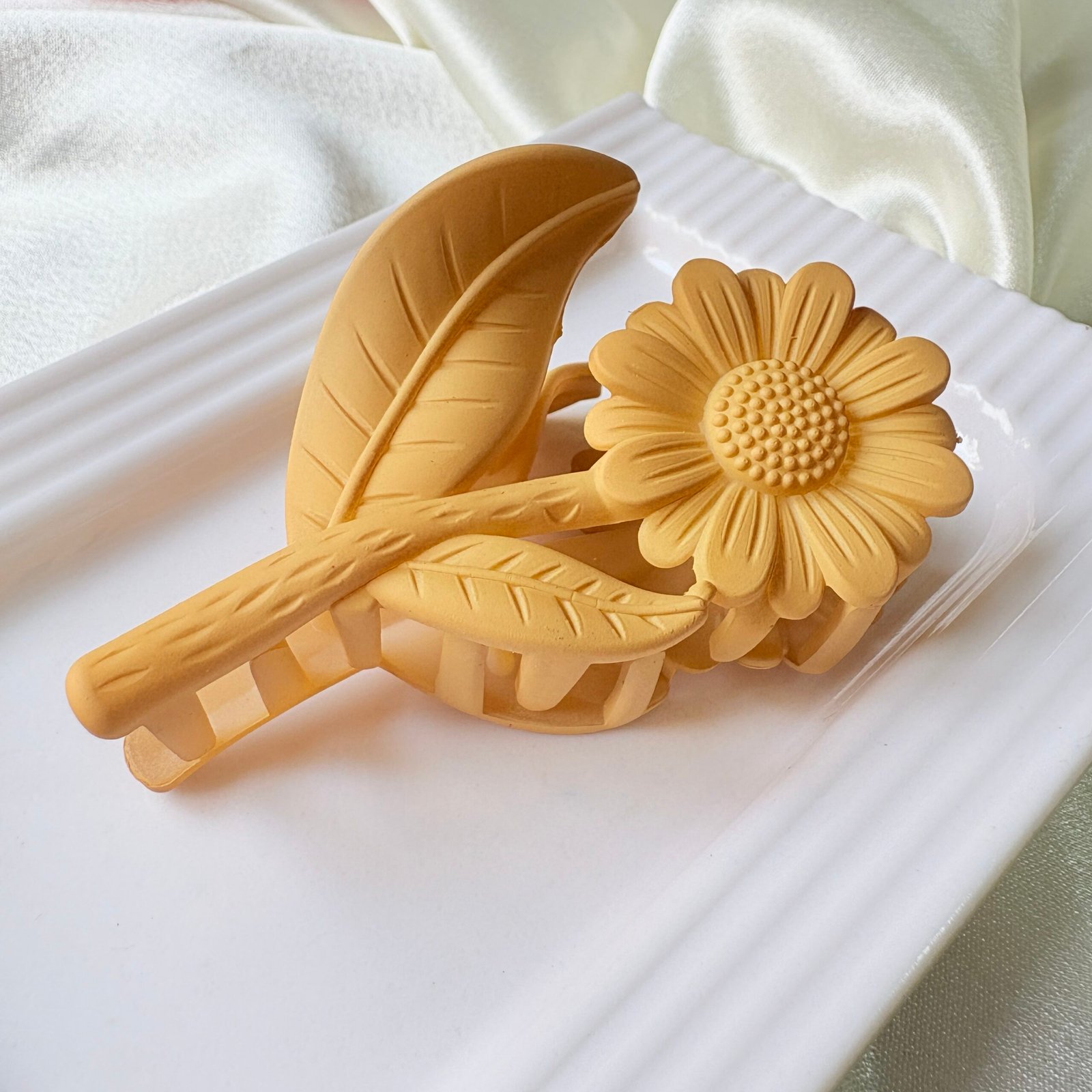 Muted Sunflower Yellow: Matte Floral Sunflower Hair Claw Clip