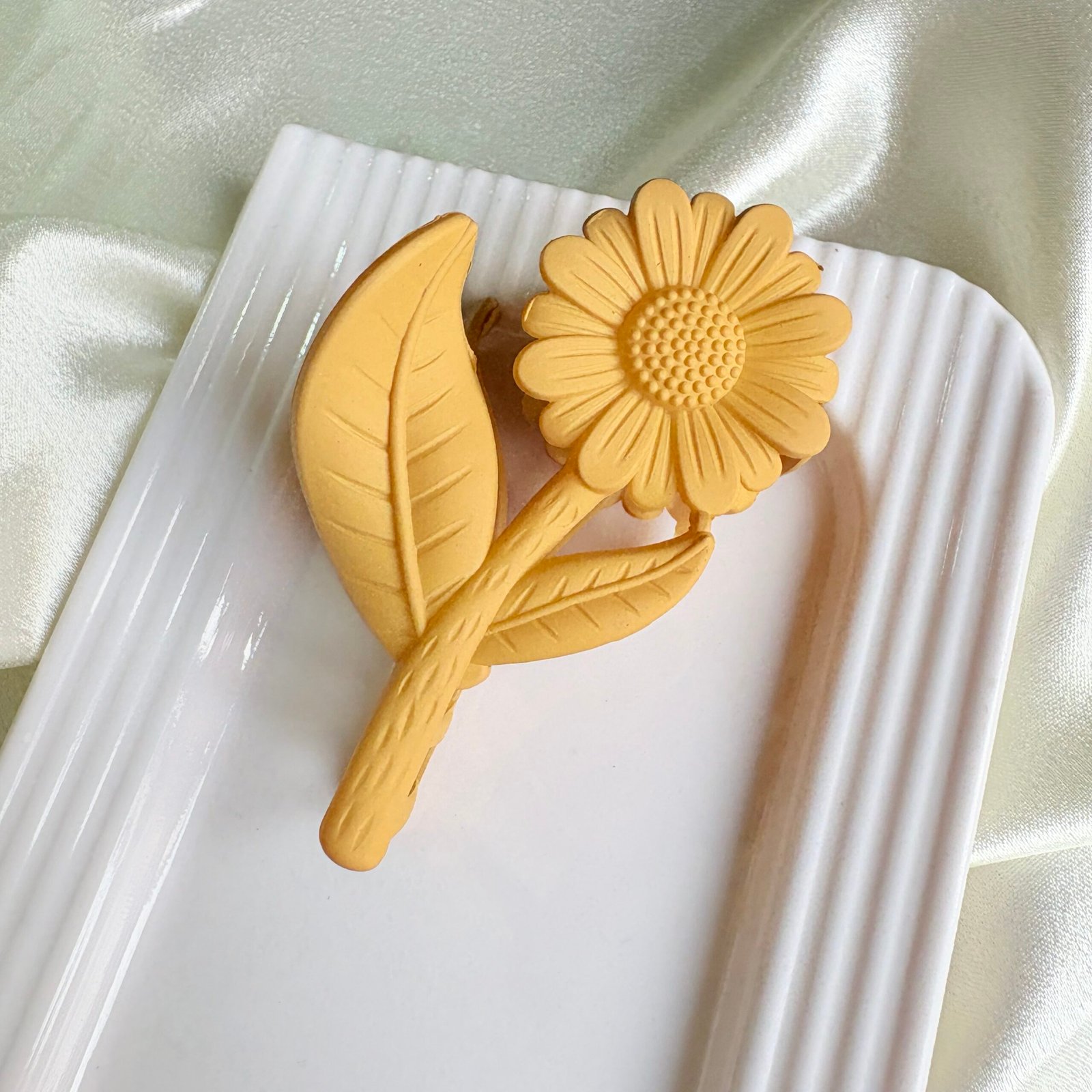 Be the first to review “Muted Sunflower Yellow: Matte Floral Sunflower Hair Claw Clip”