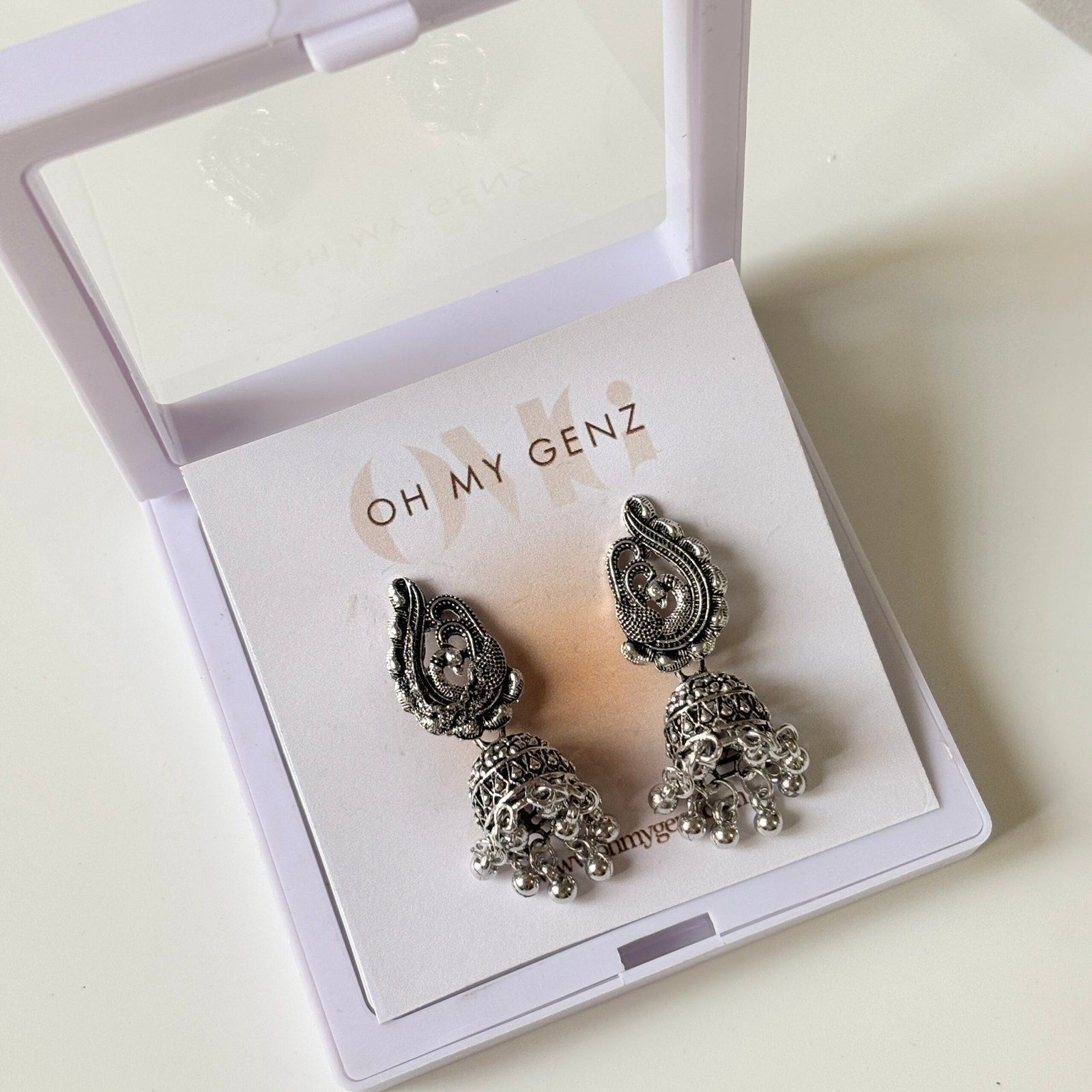 Be the first to review “Peacock Jhumka: Mayura Peacock Motif Traditional Jhumkas / Oxidized Finish – Includes Premium Keepsake Box”