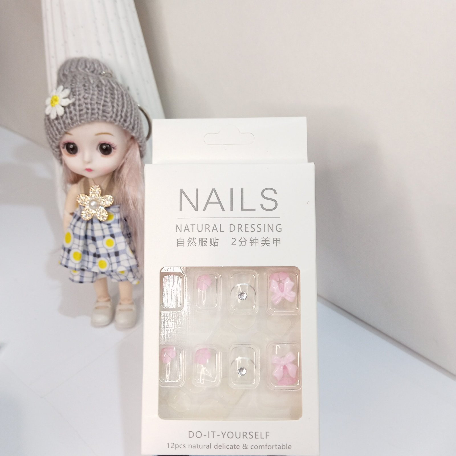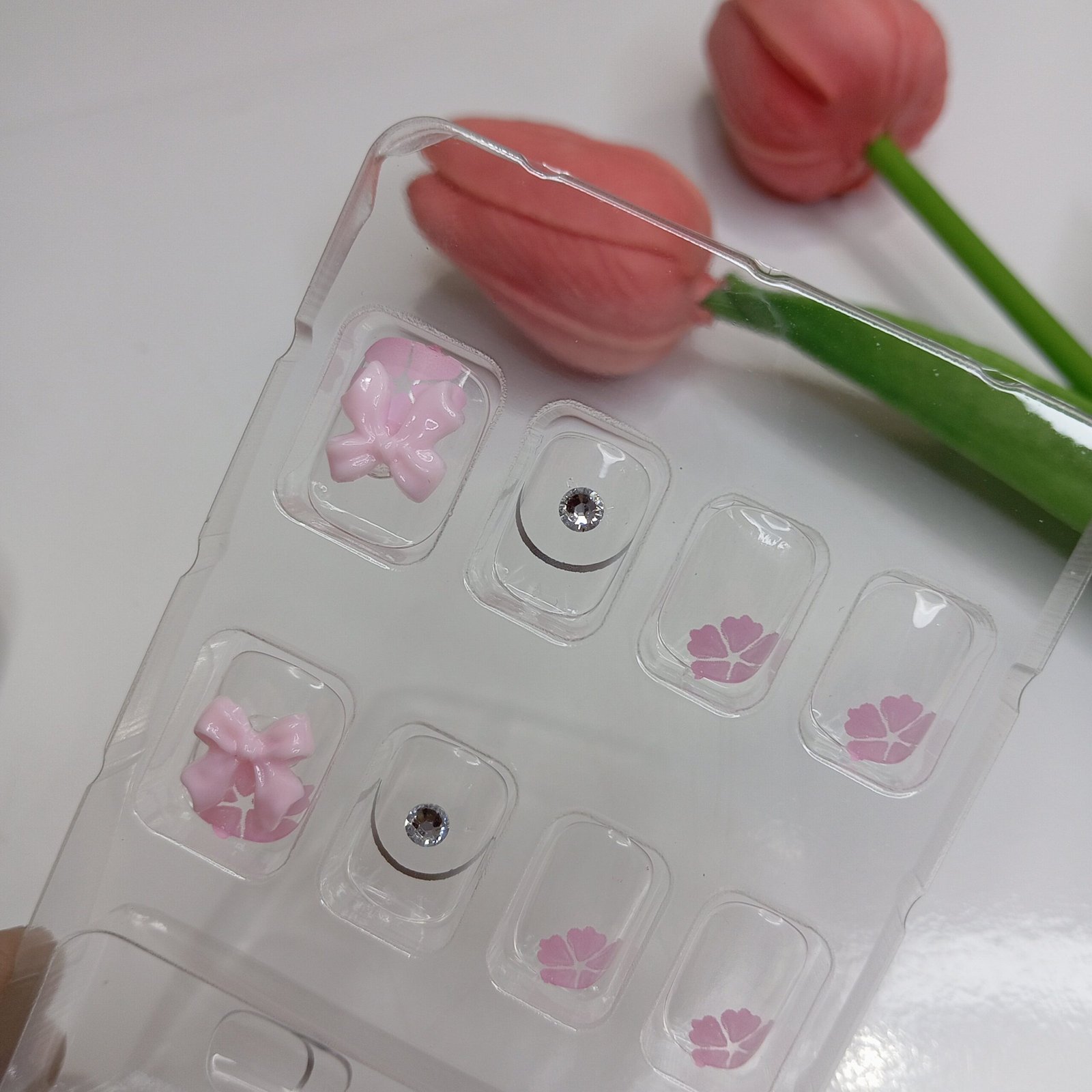 Reusabale Artificial Nails ~ Bow Press on Square Nails ~ Transparent