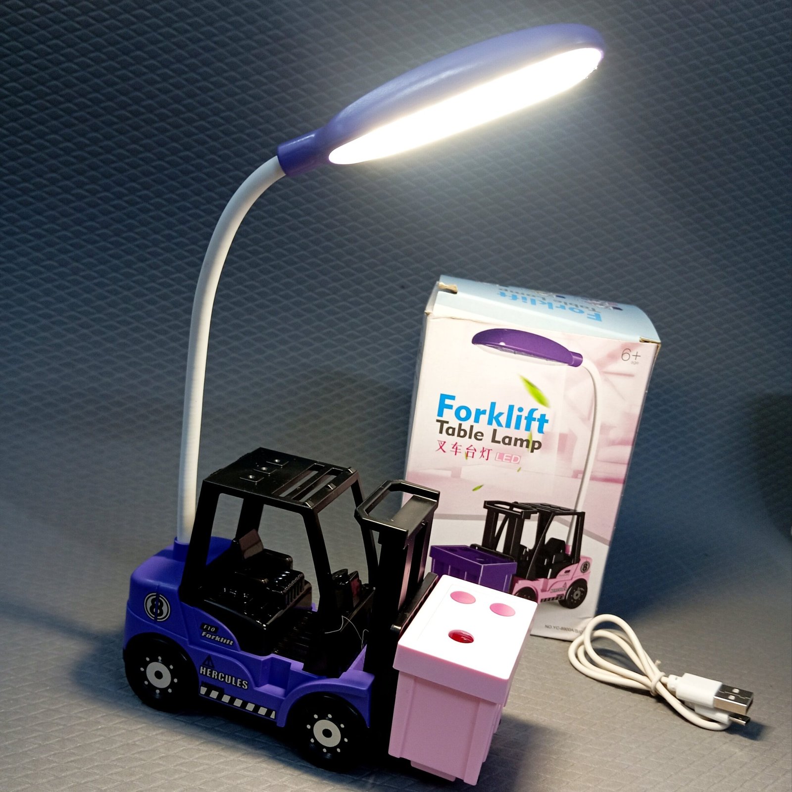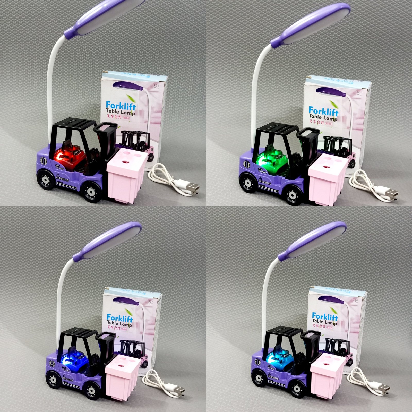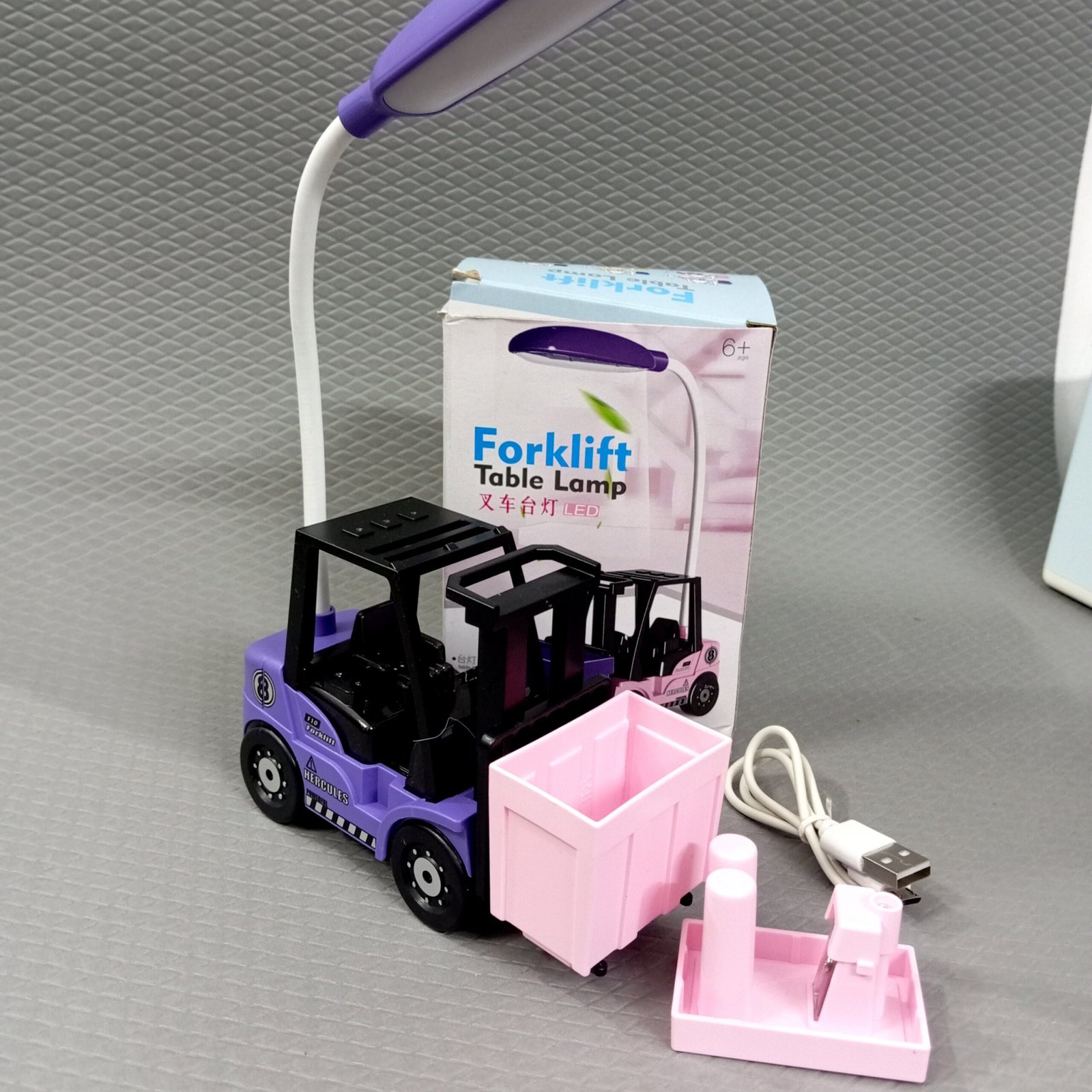 Sharpner and Table Lamp ~ Fork Truck Design ~ Chargeable ~ Pen Holder ~ Pink and Purple