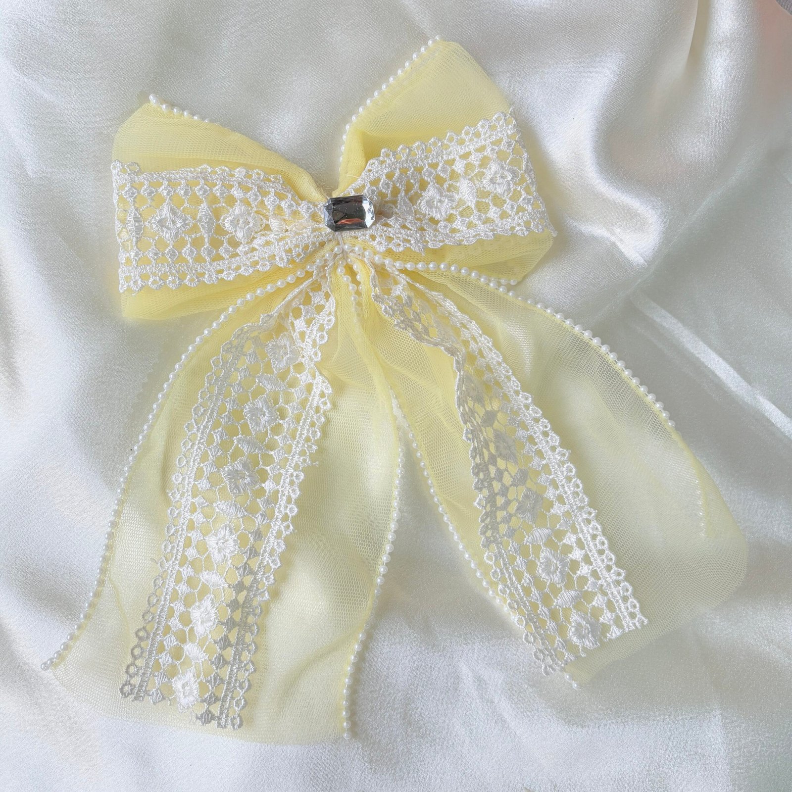 Soft Butter Pearl Lace Bow ~ Large Size