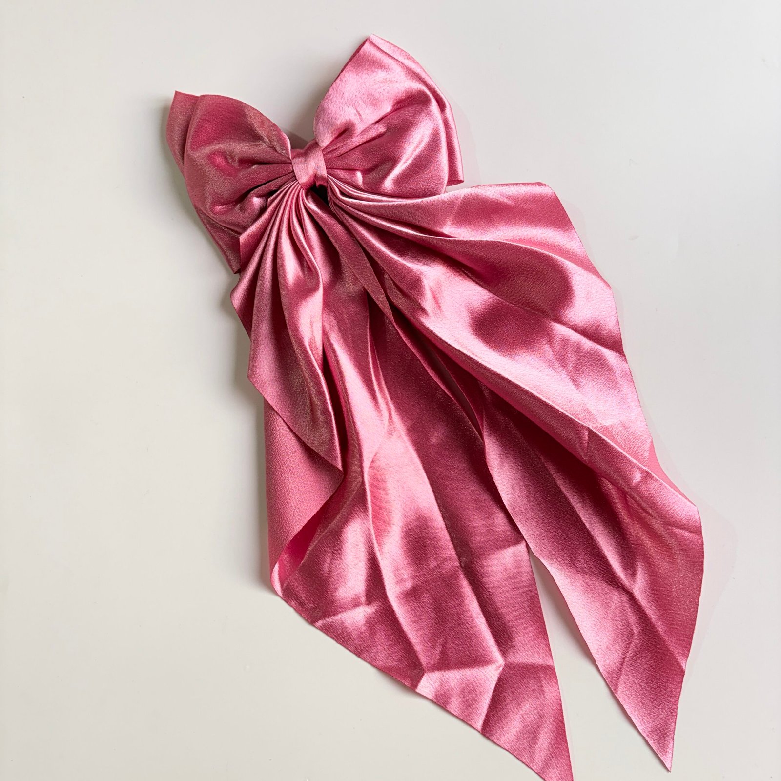 Captivating and bold, this dusty raspberry-pink bow features a deep, multi-dimensional shimmer. The wide, dramatic tails and lustrous texture provide a high-fashion look that bridges the gap between classic and contemporary. Style it with a sleek low bun or a half-up look for a pop of radiant color.
